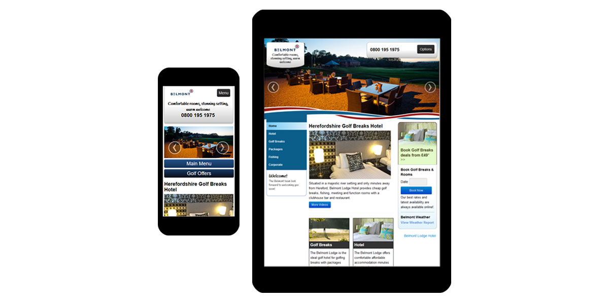 Mobile first UI / web design for Belmont Lodge Hotel & Golf Course, Hereford