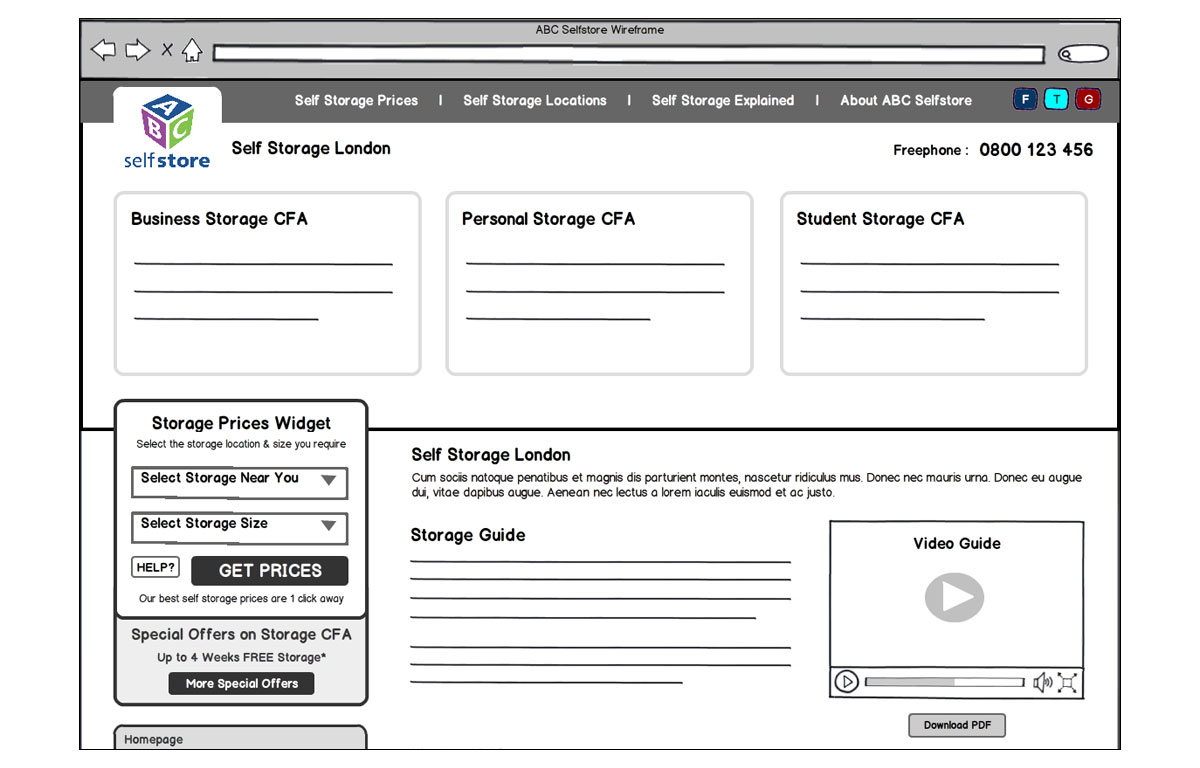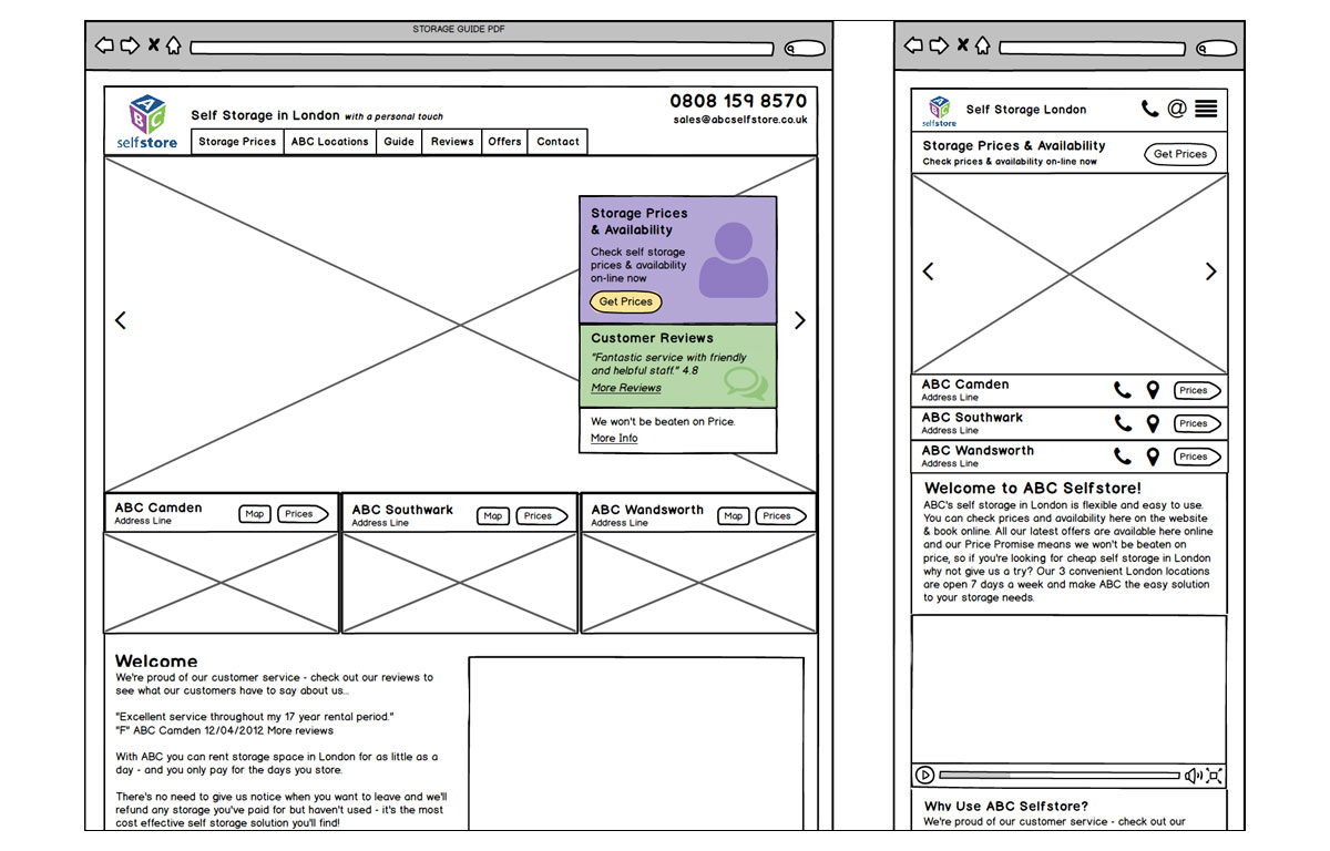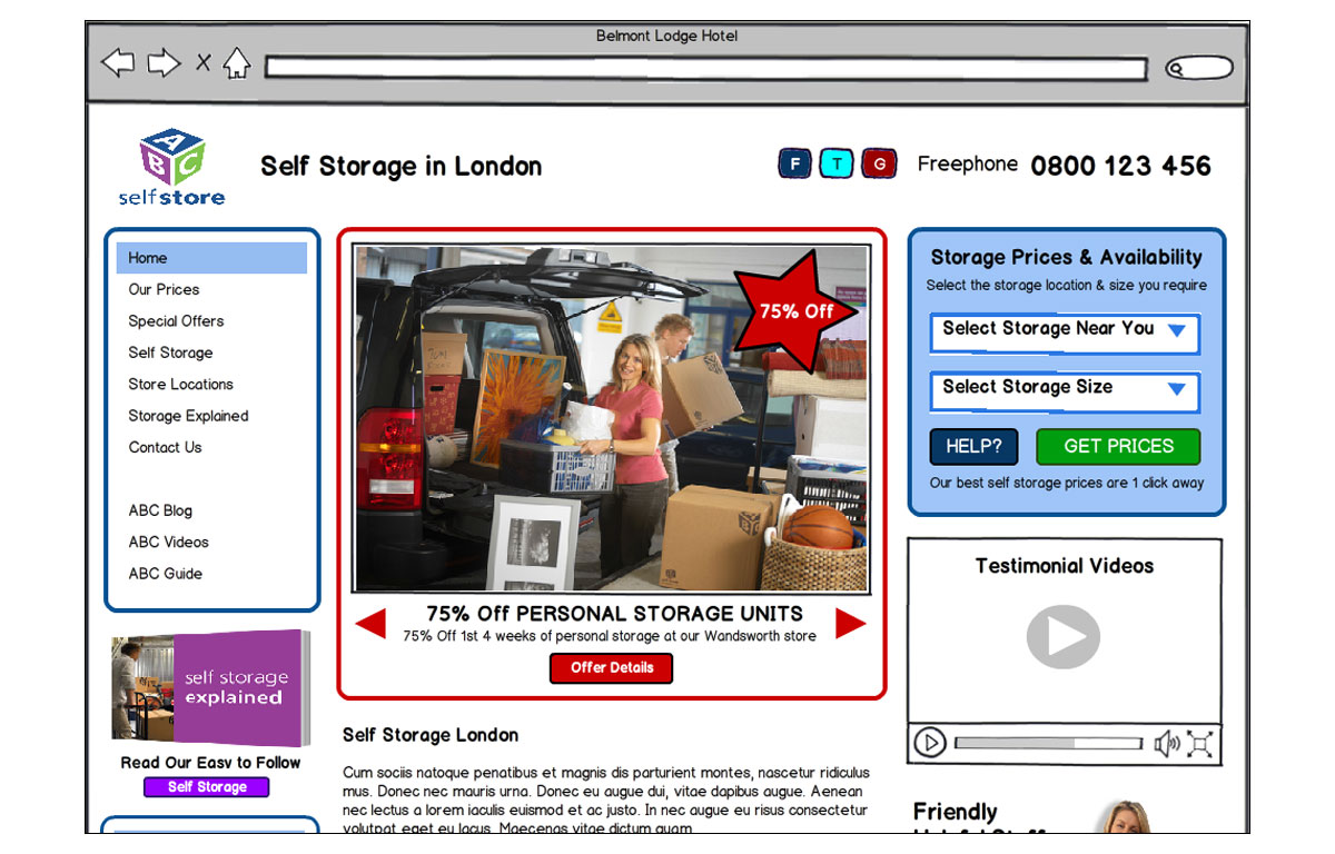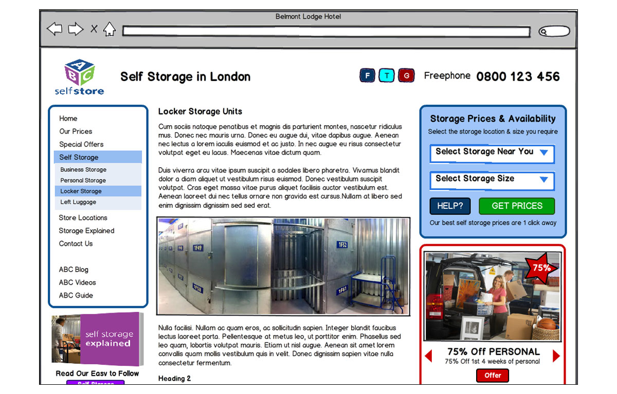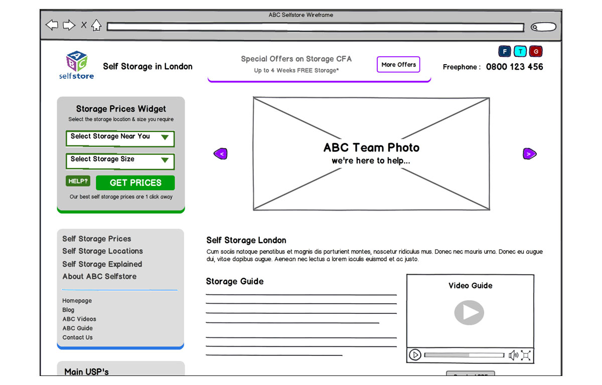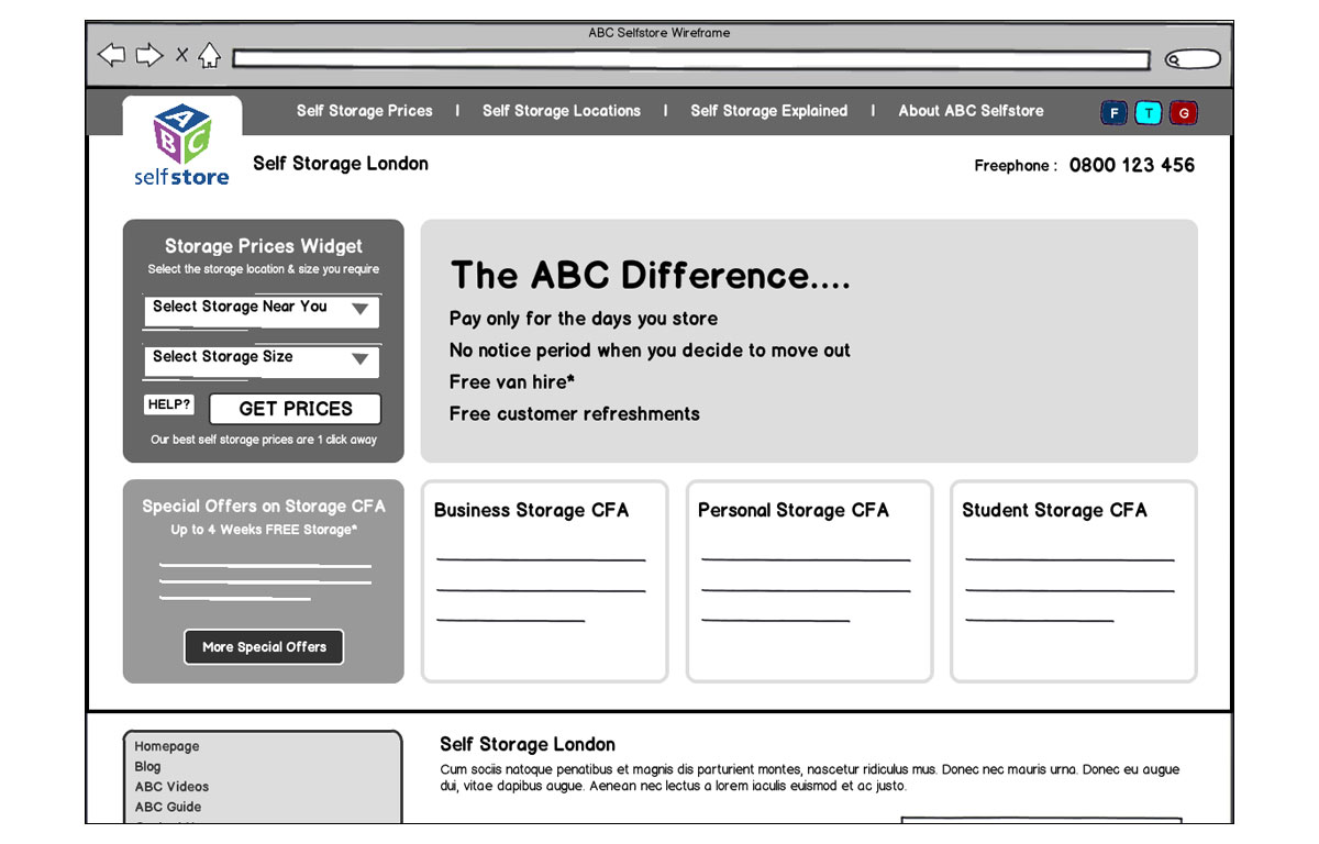 See below for a selection wire-frames we produced for various clients when starting the design process of their websites: