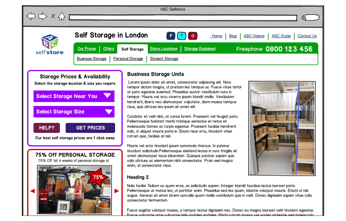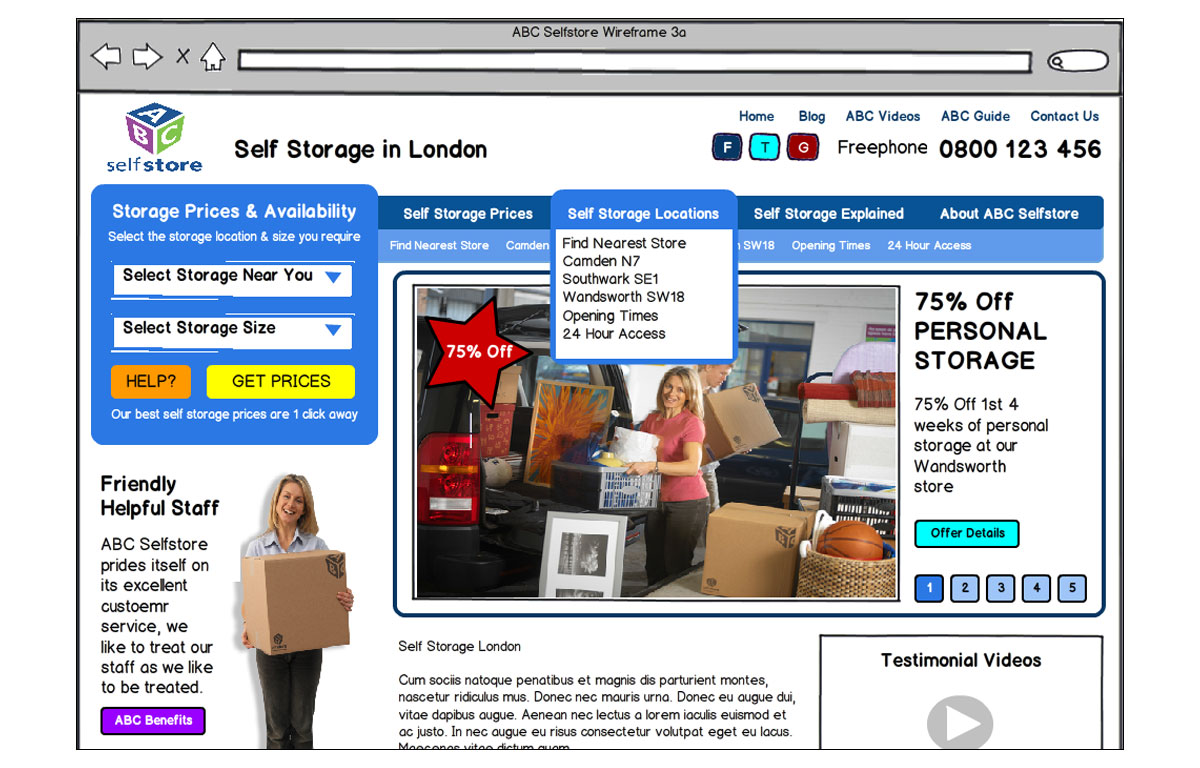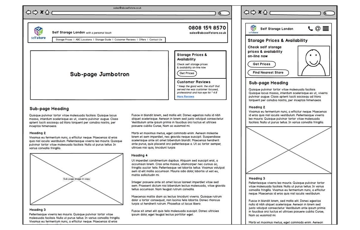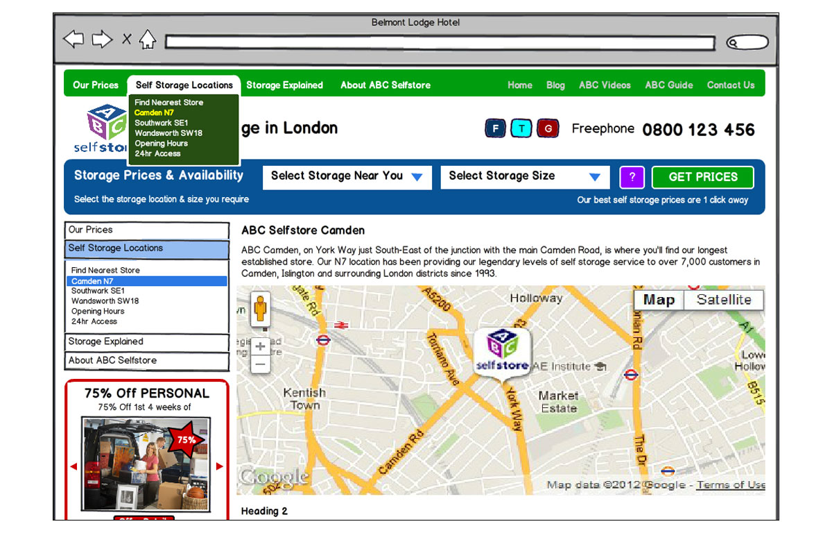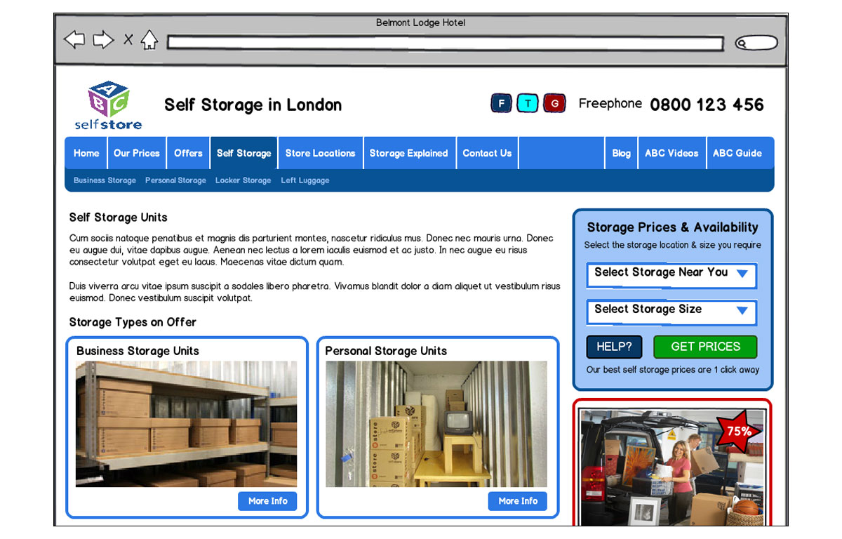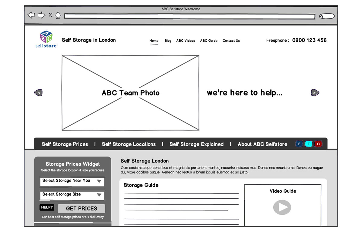 See below for a selection wire-frames we produced for various clients when starting the design process of their websites: