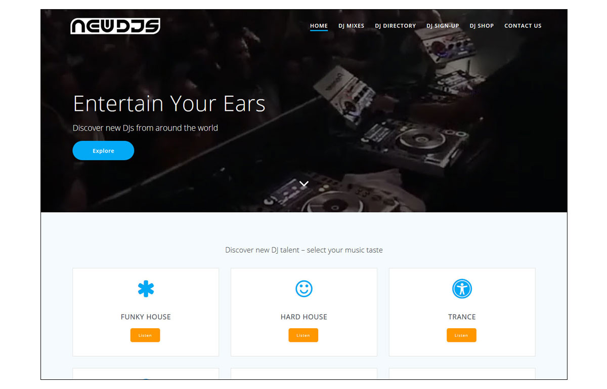We updated the design & layout of the New DJs website from traditional website coding into WordPress, giving the client a fresh modern mobile friendly responsive website experience for their users but also enables the client to add, edit and delete elements of their website themselves. Previously they needed to contact their web design company to make changes, now they can make changes instantly themselves.